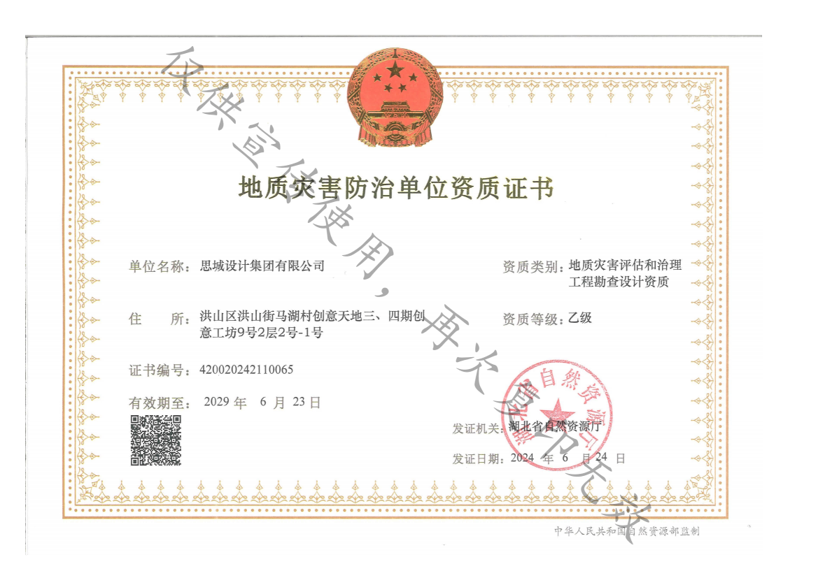 • 地質災害防護資質證書