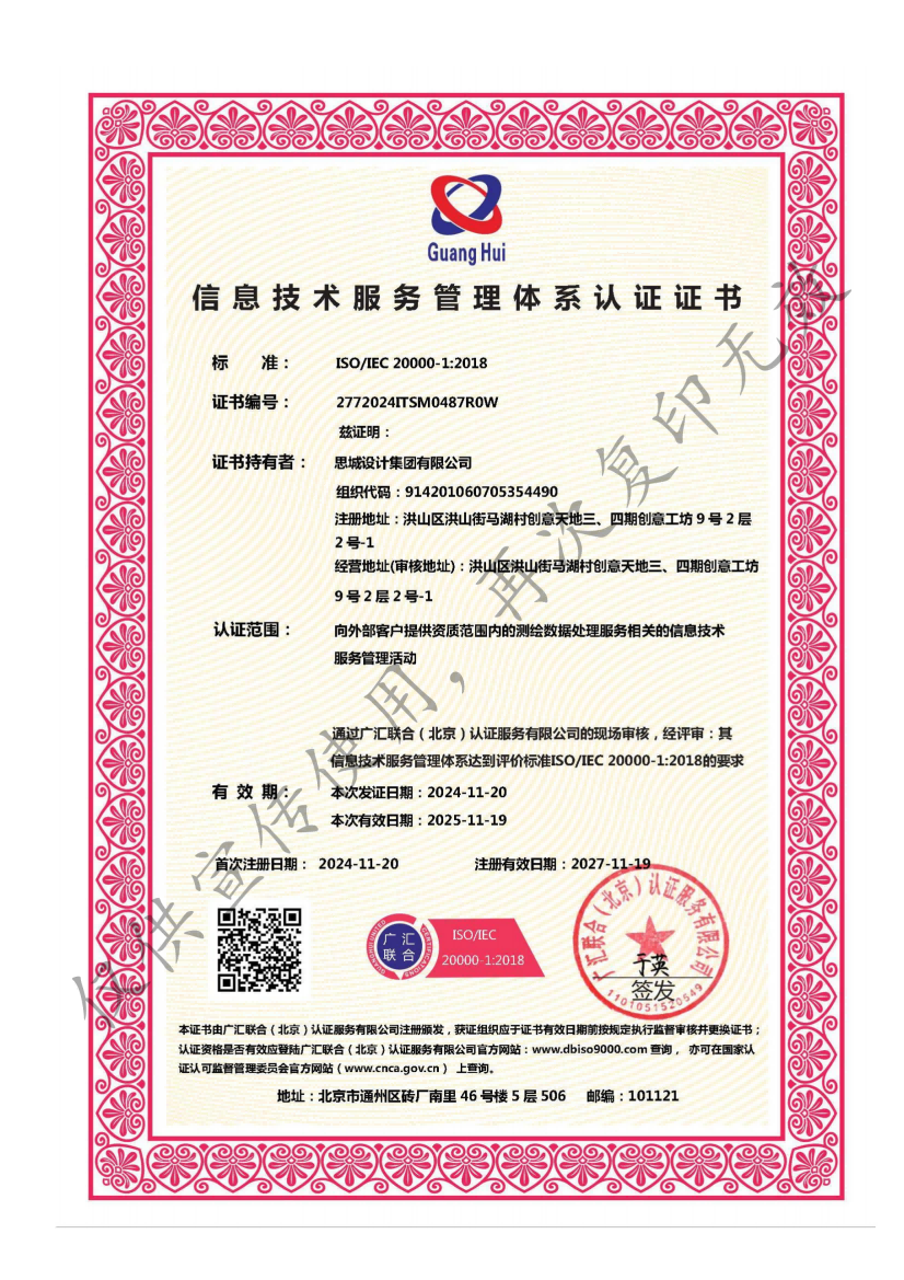 • 信息技術管理體系認證證書