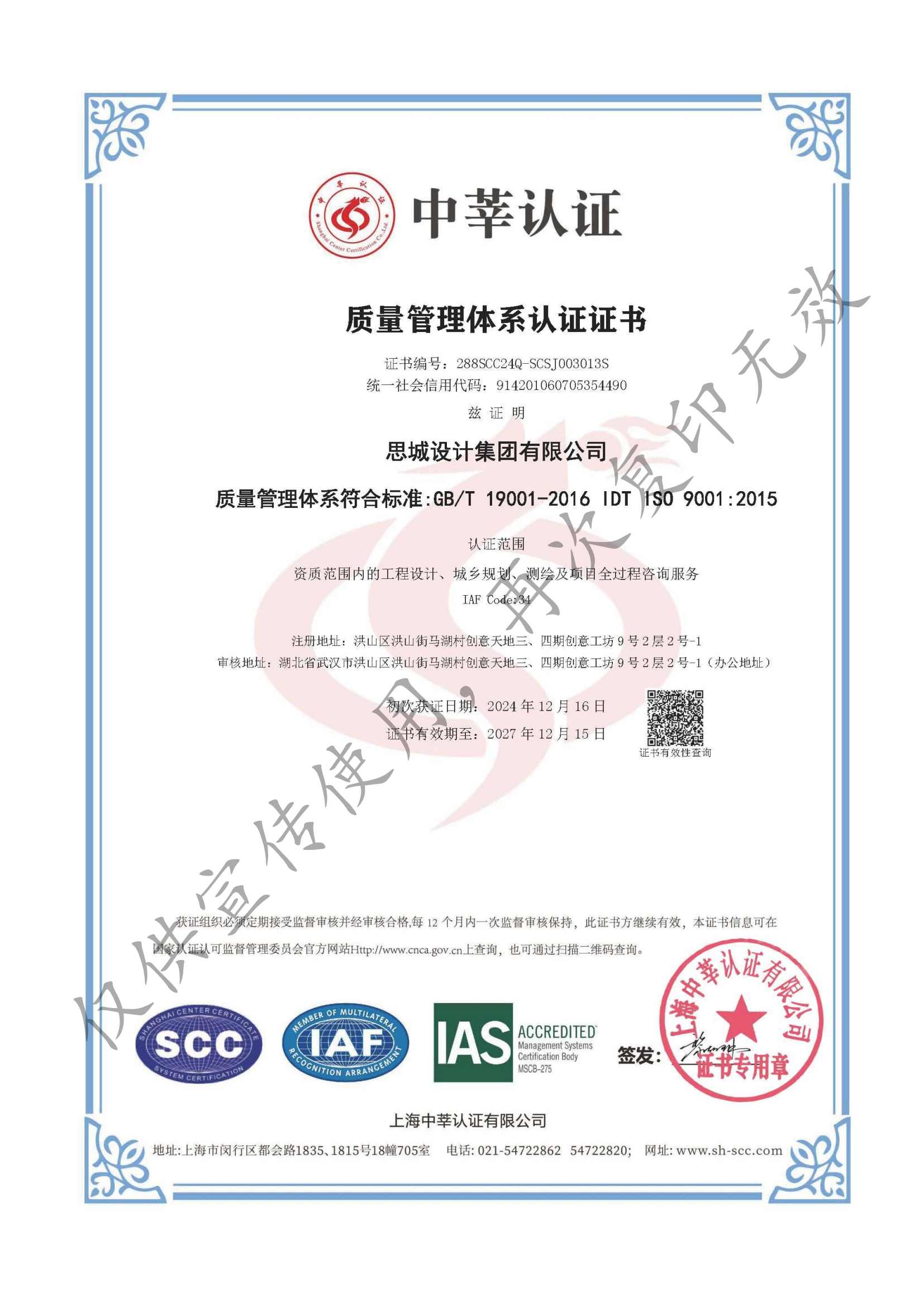 • 質量管理體系認證證書